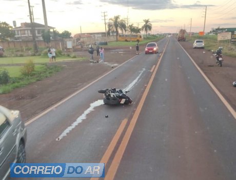 A ocorrência aconteceu na PR-182, no trecho de saída para Toledo, envolvendo um automóvel e uma motocicleta.