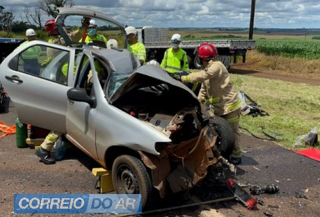 A batida envolveu um Fiat Palio e uma carreta. Segundo informações, o carro seguia no sentido Curitiba e a carreta trafegava no sentido Cascavel.