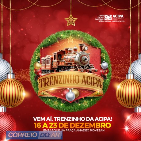 A Associação Comercial, Industrial e Agropecuária de Palotina (ACIPA) está preparando uma programação especial para o Natal. No dia 16 iniciará mais uma edição do tradicional Trenzinho da Alegria, atividade que integra a programação natalina do município e oferece uma experiência especial para as famílias palotinenses. Os embarques acontecerão na Praça Amadeo Piovesan, com circulação diária conforme a demanda.