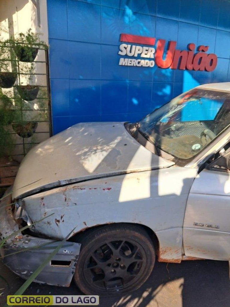 MOTORISTA EMBRIAGADO E SEM CNH COLIDE CONTRA SUPERMERCADO