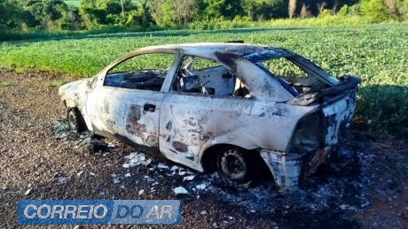 Um Chevrolet Astra foi encontrado completamente destruído pelo fogo no início da manhã desta quinta-feira (18), às margens de uma estrada rural que liga o distrito de Planalto do Oeste ao município de Mercedes, no Oeste do Paraná.