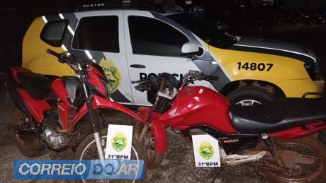 Duas motocicletas com registro de furto foram recuperadas pela Polícia Militar do Paraná durante o atendimento de uma ocorrência no município de Terra Roxa.