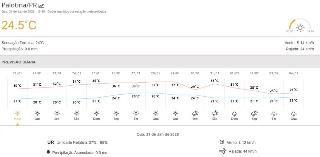 Calor e abafamento aumentam em Palotina e região, com chance de chuva ao longo do dia