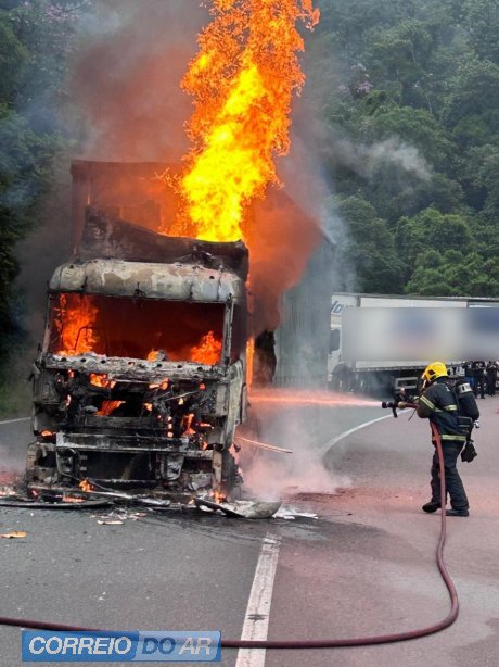 Segundo o Corpo de Bombeiros, o motorista, relatou que estava descendo a serra quando ouviu um estouro, em seguida o caminhão desligou, momento em que percebeu fumaça na parte inferior da cabine.