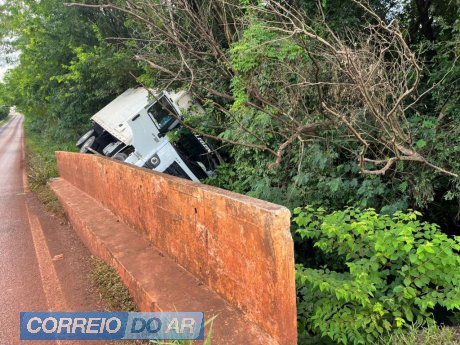 Um caminhão baú com placas de Pérola, região de Umuarama, saiu da pista e caiu às margens da rodovia PR-491, em Nova Santa Rosa, nas proximidades da ponte do Rio Sanga Xerê, no trecho com sentido a Maripá. O veículo transportava farinha, carregada em Marechal Cândido Rondon, com destino final ao estado de São Paulo.