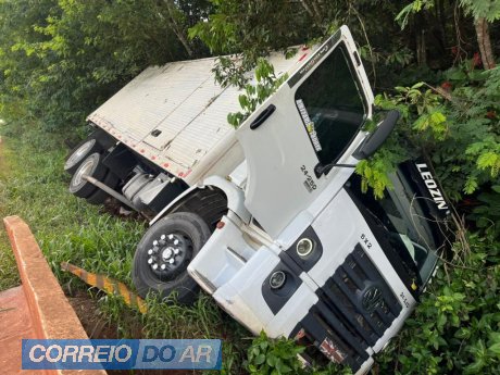 Caminhão sai da pista após manobra para evitar colisão na PR-589 em Nova Santa Rosa