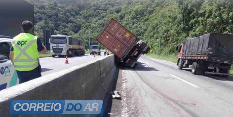 Segundo a PRF (Polícia Rodoviária Federal), o acidente aconteceu sentido Litoral e uma faixa ficou interditada. Na imagem é possível ver que o veículo parou sobre a mureta de proteção.