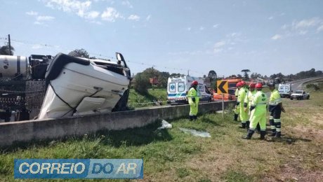 O óbito foi do condutor do caminhão, que tombou em uma curva. Como a carga se espalhou pela pista, a rodovia ficou interditada no sentido crescente, de Castro a Carambeí.