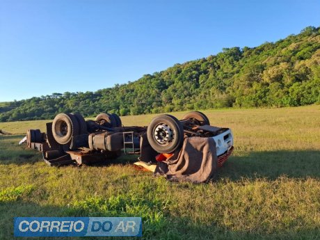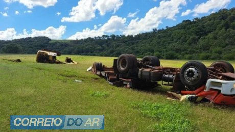 Caminhão transportando maquinário capota entre Corbélia e Braganey e motorista morre