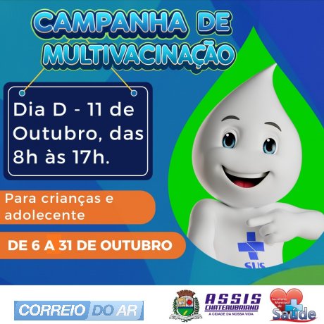 A Prefeitura de Assis Chateaubriand, por meio da Secretaria de Saúde, deu início nesta segunda-feira (06) à Campanha de Multivacinação voltada para crianças e adolescentes. A ação segue até o dia 31 de outubro, em todas as Unidades Básicas de Saúde do município.