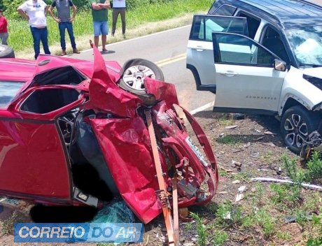 A colisão envolveu dois veículos, um Jeep Commander com placa de Belo Horizonte, Minas Gerais, e um Celta, com placa de Enéas Marques.