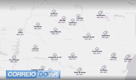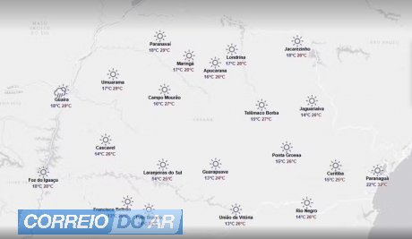 Para quinta (9), o Simepar afirma que não há previsão de chuva em praticamente todo o Paraná.