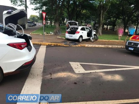 Colisão envolve Fiat Cronos e Onix na esquina da Igreja Católica em Marechal Rondon