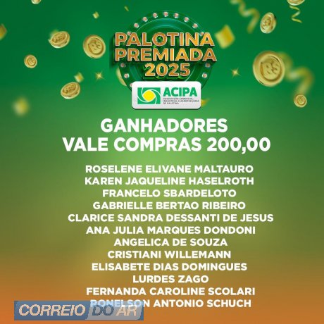 Com o encerramento da edição 2025, a Acipa já iniciou o planejamento da Campanha Palotina Premiada 2026, reforçando o compromisso de continuar incentivando o comércio local e valorizando os consumidores de Palotina.
