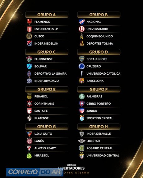 A Conmebol (Confederação Sul-Americana de Futebol) sorteou nesta quinta-feira (19) os grupos da Copa Libertadores da América. O Flamengo, atual campeão da competição, ficou no Grupo A ao lado de Estudiantes (Argentina), Cusco (Peru) e Independiente Medellín (Colômbia).