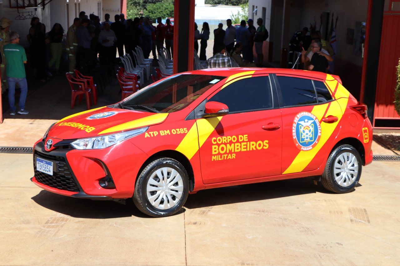 Viatura foi entregue ao Corpo de Bombeiros de Palotina Veículo entregue é um Toyota Yaris Lideranças prestigiaram entrega do veículo