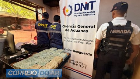 Uma grande quantia em dinheiro não declarado foi apreendida na Ponte Internacional da Amizade, que liga Foz do Iguaçu a Ciudad del Este, na fronteira entre Brasil e Paraguai. A ação ocorreu durante fiscalização da Direção Nacional de Receita Tributária (DNIT) do Paraguai.