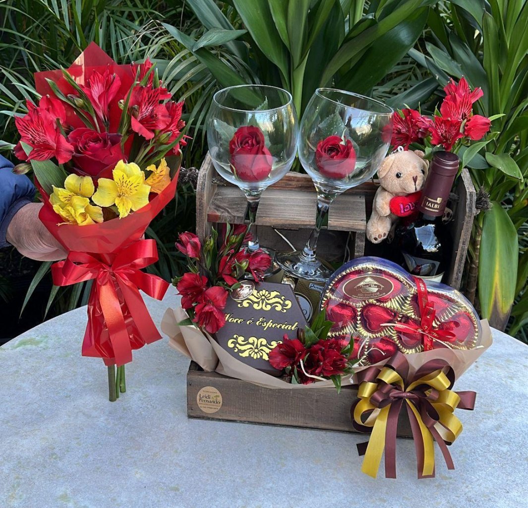 Cada detalhe é pensado com cuidado: combinações de flores frescas, chocolates selecionados, bebidas, frutas e itens especiais que transformam qualquer ocasião em um momento inesquecível.