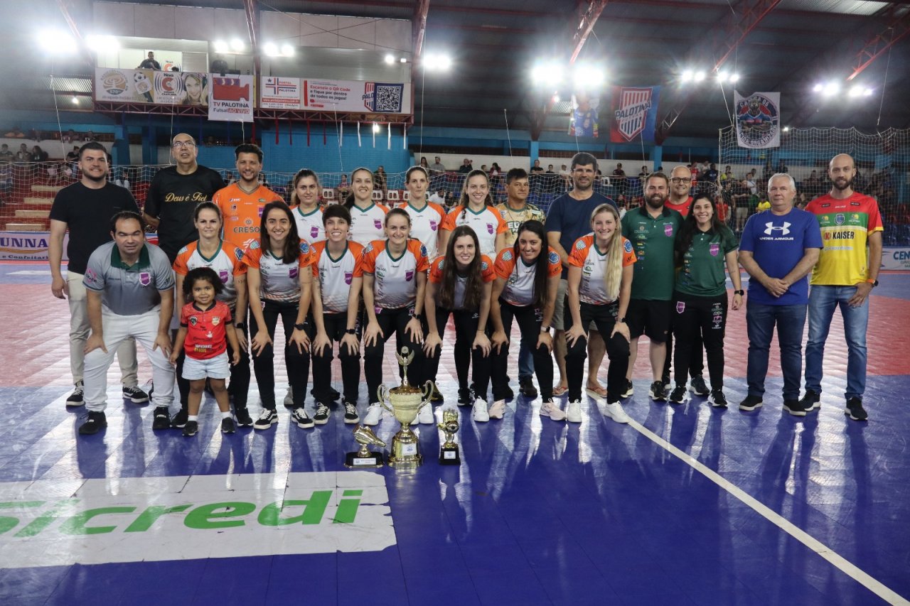 No último sábado (18), antes da final do Campeonato Municipal de Futsal, o Ginásio de Esportes Ardomar Somensi foi palco de mais um grande momento para o esporte local: a equipe feminina do Palotina Futsal/Fronteirabet/Soxxer foi oficialmente homenageada pela conquista do tricampeonato da Copa AMOP de Futsal Feminino.
