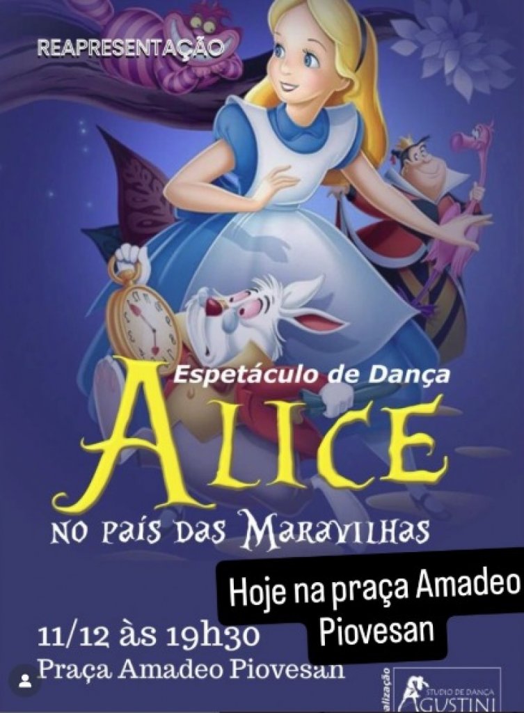 Espetáculo “Alice no País das Maravilhas” será apresentado nesta quinta na Praça Amadeo Piovesan