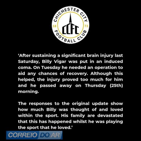 O Chichester City confirmou a morte do atleta em comunicado nas redes sociais, pedindo respeito à privacidade da família, que está devastada pela perda enquanto ele praticava o esporte que amava. Logo após o acidente, o clube havia informado que Billy estava em coma e recebia tratamento intensivo.