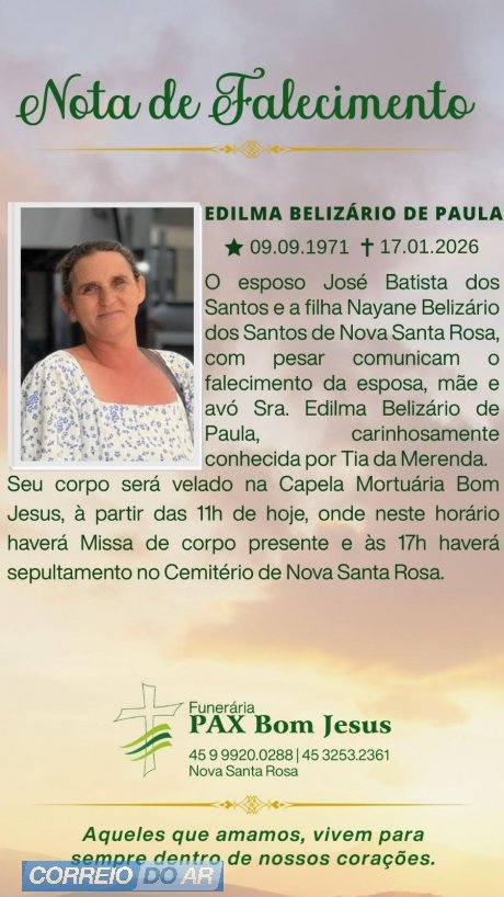 A confirmação de morte encefálica de Edilma Belizario de Paula de 54 anos resultou em um gesto de solidariedade que pode transformar a vida de ao menos oito pessoas. A família autorizou a doação de múltiplos órgãos, e a captação foi realizada na noite de sábado (17), no Hospital Bom Jesus, em Toledo.