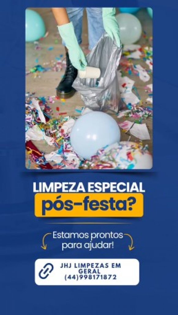 A etapa final de qualquer festa ou evento também exige cuidado especial: a limpeza pós-festa. É nesse momento que a JHJ Limpezas em Geral se destaca, oferecendo serviços completos para deixar seu espaço impecável, pronto para uso rapidamente, com segurança e excelência.