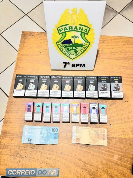 Flagra em Mariluz: jovem é preso com cigarros eletrônicos contrabandeados e R$ 1,4 mil em dinheiro
