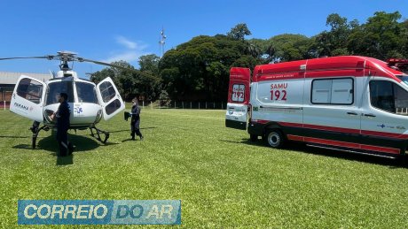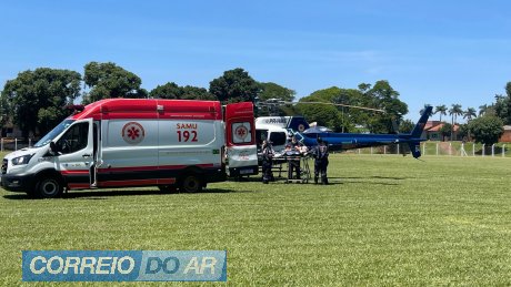 O transporte foi realizado pela aeronave do Consamu até o Estádio Municipal. De lá, o deslocamento até o Hospital Municipal de Palotina foi concluído pela ambulância do Samu.