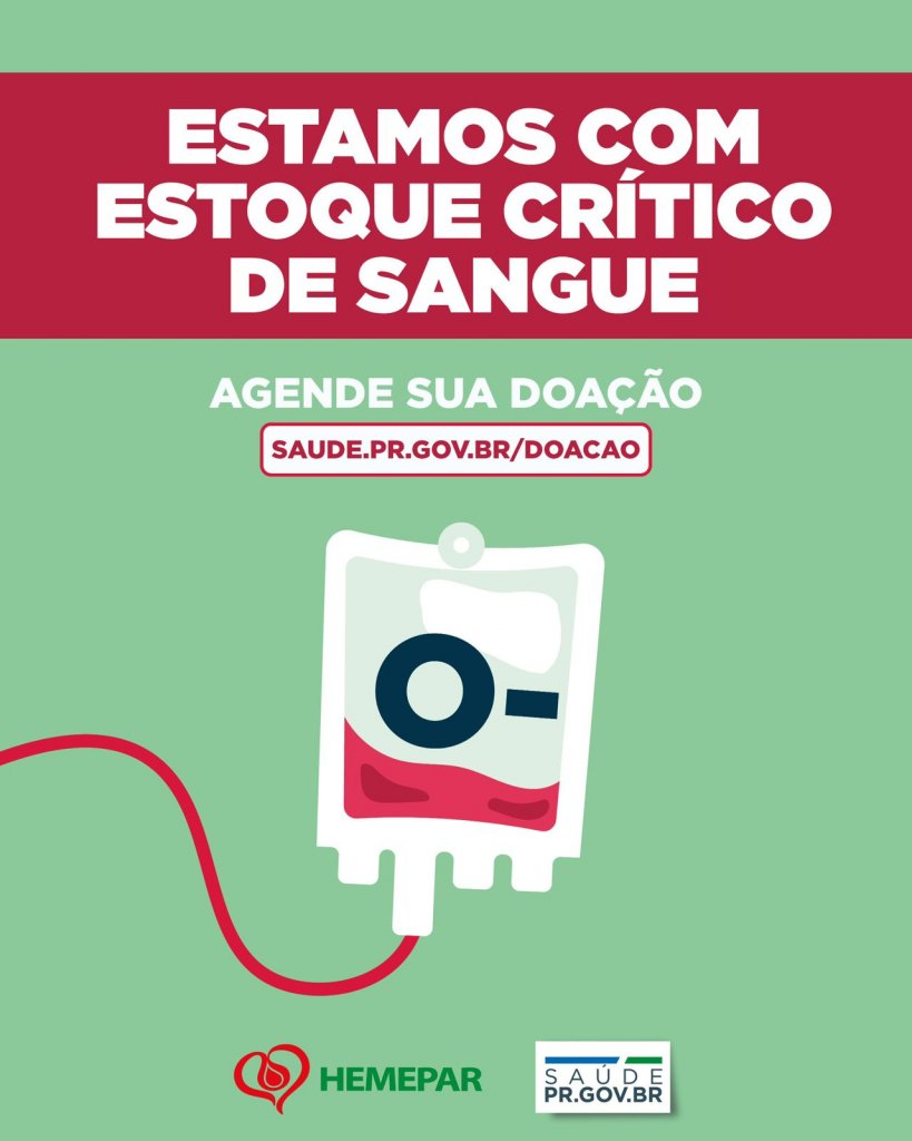 O Hemocentro de Cascavel fez um apelo à população por conta do baixo estoque de sangue, com necessidade urgente principalmente do tipo O-. A unidade reforça que a participação dos doadores é fundamental para manter atendimentos e procedimentos médicos na região.
