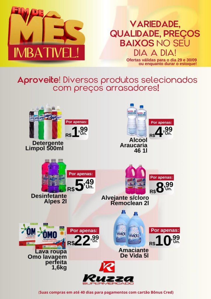 Hoje é o último dia para aproveitar as ofertas do Fim de Mês Turbinado no Supermercado Ruzza de Palotina