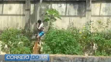 Vítima escalou parede de seis metros, pulou grade de segurança e se pendurou em árvore para acessar área, diz prefeitura; local foi fechado para visitações e felino está bem, de acordo com veterinário