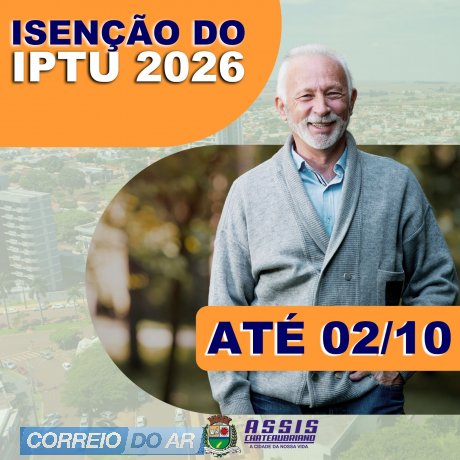 Os moradores de Assis Chateaubriand que desejam solicitar a isenção do IPTU (Imposto Predial e Territorial Urbano) para 2026, já podem fazer, o prazo vai até 2 de outubro. A Secretaria de Habitação e Assuntos Comunitários é responsável pelo recebimento dos pedidos e orienta os cidadãos sobre os critérios e documentos necessários para a concessão do benefício.