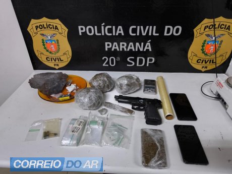 O indivíduo foi preso em flagrante pelos crimes de Tráfico de Drogas e Posse Irregular de Arma de Fogo, se encontra na Cadeia Pública local à disposição da Justiça Criminal da Comarca.