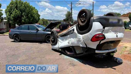 Batida seguida de capotamento deixou duas pessoas feridas em Cascavel, no Oeste do Paraná,neste início de tarde de segunda-feira (9).