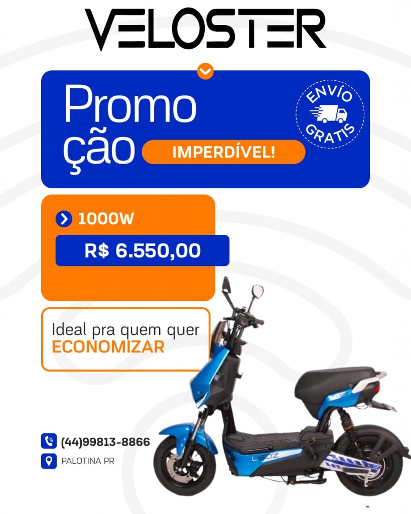 A Veloster Palotina apresenta a scooter elétrica com motor de 1000W, perfeita para quem busca praticidade e economia.