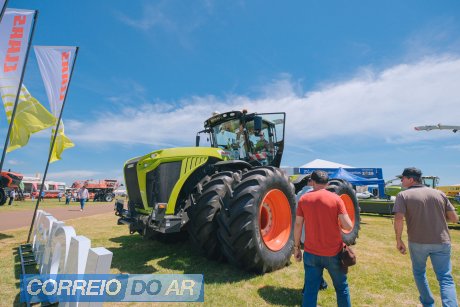 Ainda na área de máquinas, uma das atrações é um trator Claas, modelo Xeron 5000. Com 530 cv e oito pneus, ele é indicado para grandes áreas e impressiona pelo tamanho e pela cabine com monitores e comandos eletrônicos.