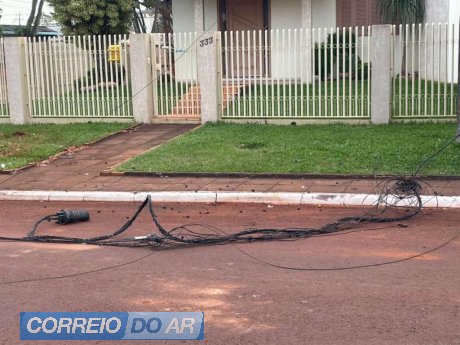 A situação foi percebida logo nas primeiras horas da manhã. A principal suspeita é de que um veículo de grande porte tenha passado pelo local durante a madrugada ou no início da manhã e acabou enroscando na fiação instalada sobre a rua, arrancando parte dos cabos.