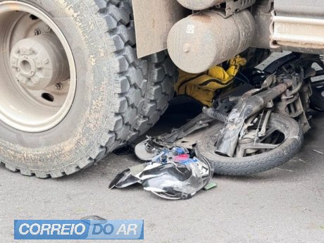 Moto enrosca embaixo de caminhão e piloto sai sem ferimentos no Paraná