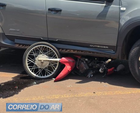 Motociclista escapa praticamente ileso após moto ficar embaixo de carro em acidente em Toledo