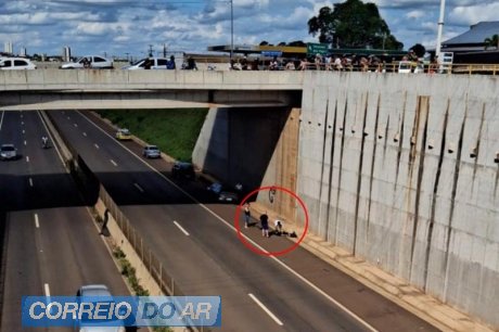 Um motociclista ficou ferido após cair do viaduto do posto Gauchão, na rodovia PR-323, trecho urbano de Umuarama, na tarde deste sábado (20). O acidente aconteceu por volta das 16h e chamou a atenção de muitas pessoas que pararam no local para acompanhar a situação e auxiliar o condutor.