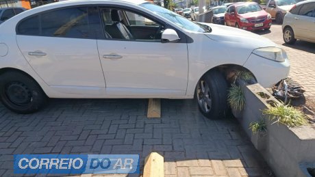 Com isso, o veículo avançou e atingiu a traseira de um Renault Kwid, que estava estacionado em frente à instituição bancária. Em seguida, o Fluence ainda colidiu contra uma mureta, ficando parcialmente suspenso sobre a estrutura.