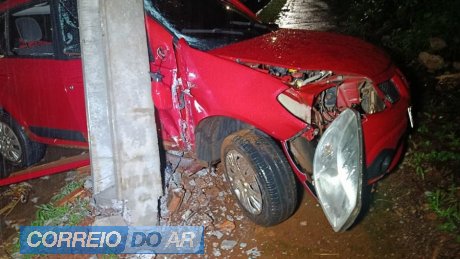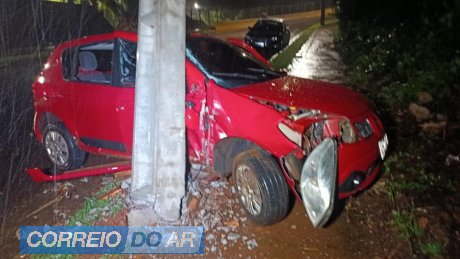 Motorista fica ferido após bater carro contra poste no Jardim Bandeirantes em Toledo