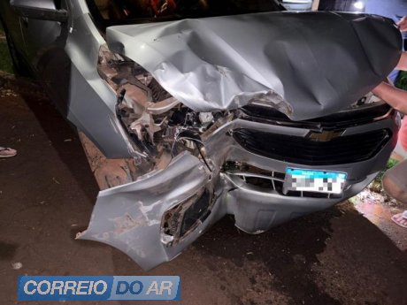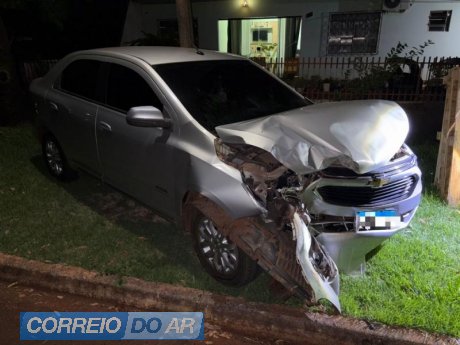 Com o impacto, a dianteira do GM/Cobalt ficou destruída.