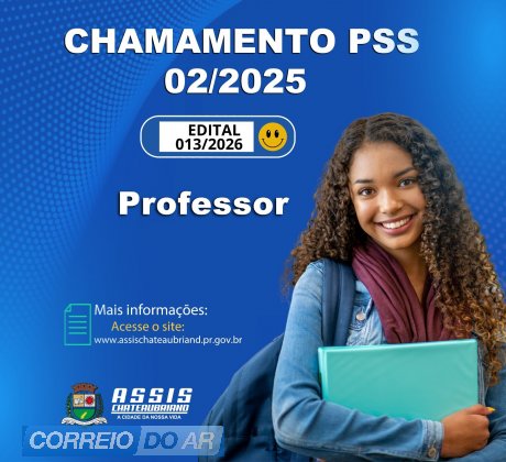 O município de Assis Chateaubriand publicou nesta terça-feira (3) a convocação de candidato aprovado no Processo Seletivo Simplificado (PSS) para o cargo de professor. O edital PSS nº 013/2026 publicado no diário oficial, refere-se à 23ª convocação do PSS 02/2025.