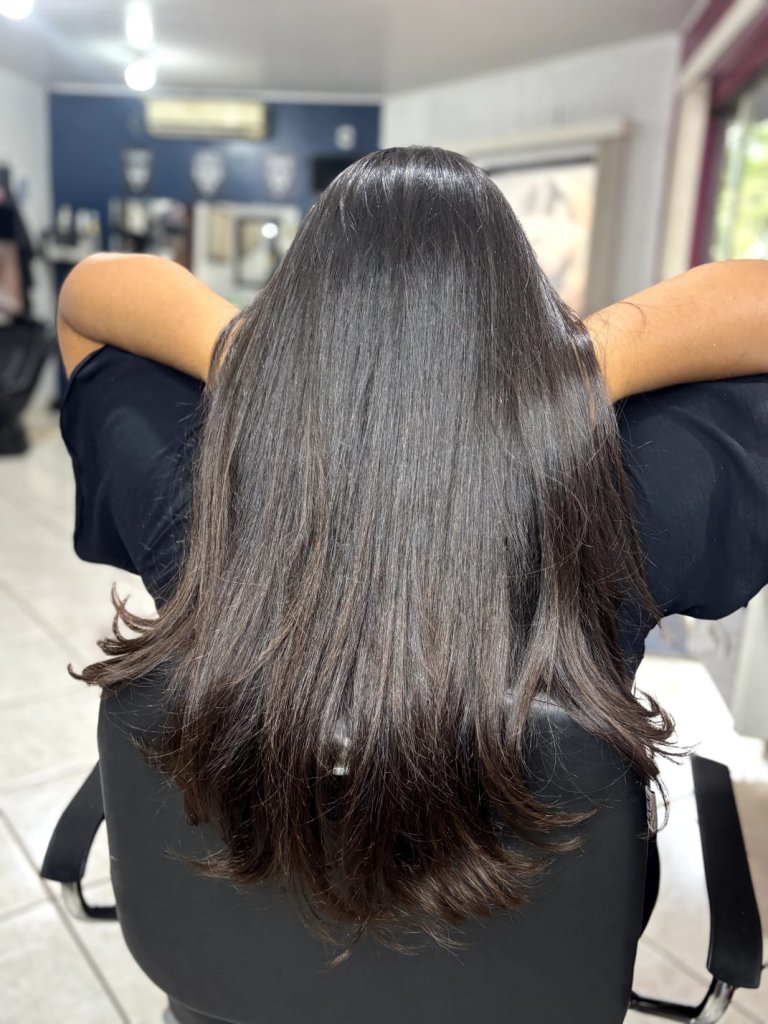 O salão oferece um tratamento completo, com corte, escova profissional e hidratação profunda, devolvendo brilho, maciez e saúde aos cabelos, com valor especial de R$ 100,00, antes oferecido por R$ 200,00.