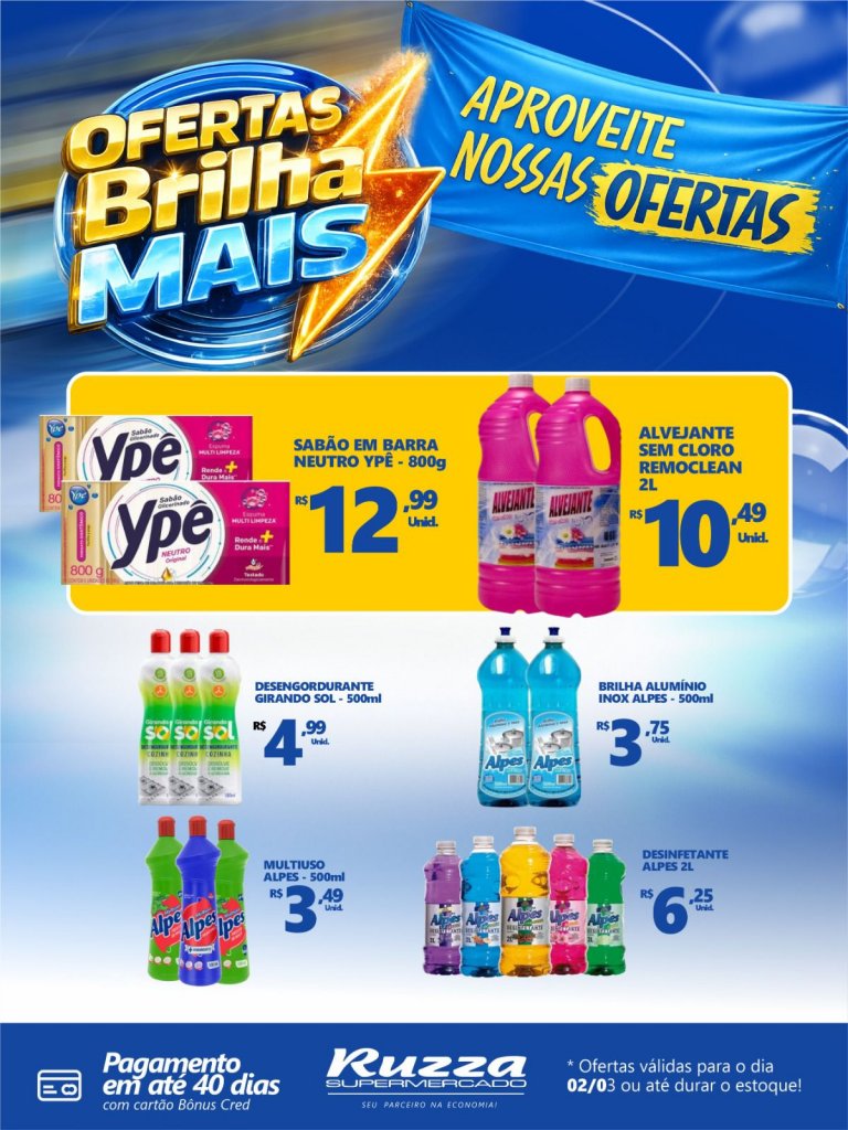 Já as promoções do “Saldão Ruzza” têm validade de 02/03 a 07/03, também válidas enquanto durarem os estoques.