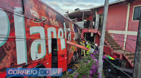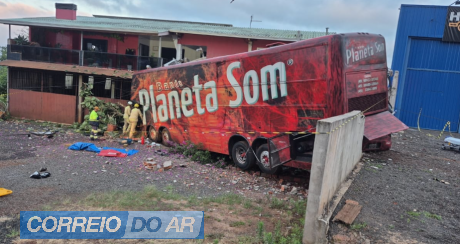 Ônibus de banda atinge casa após colisão na BR-158 e acidente deixa um morto em Pato Branco