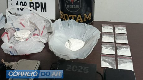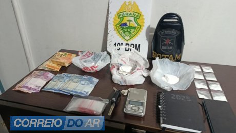 Ele ainda revelou que havia mais entorpecentes em sua residência, localizada em Toledo. Com autorização de um familiar que reside no local, os policiais entraram na casa e encontraram uma balança de precisão, oito porções de cocaína embaladas em zip lock (totalizando 8 gramas) e uma porção maior em pedra bruta (41 gramas).