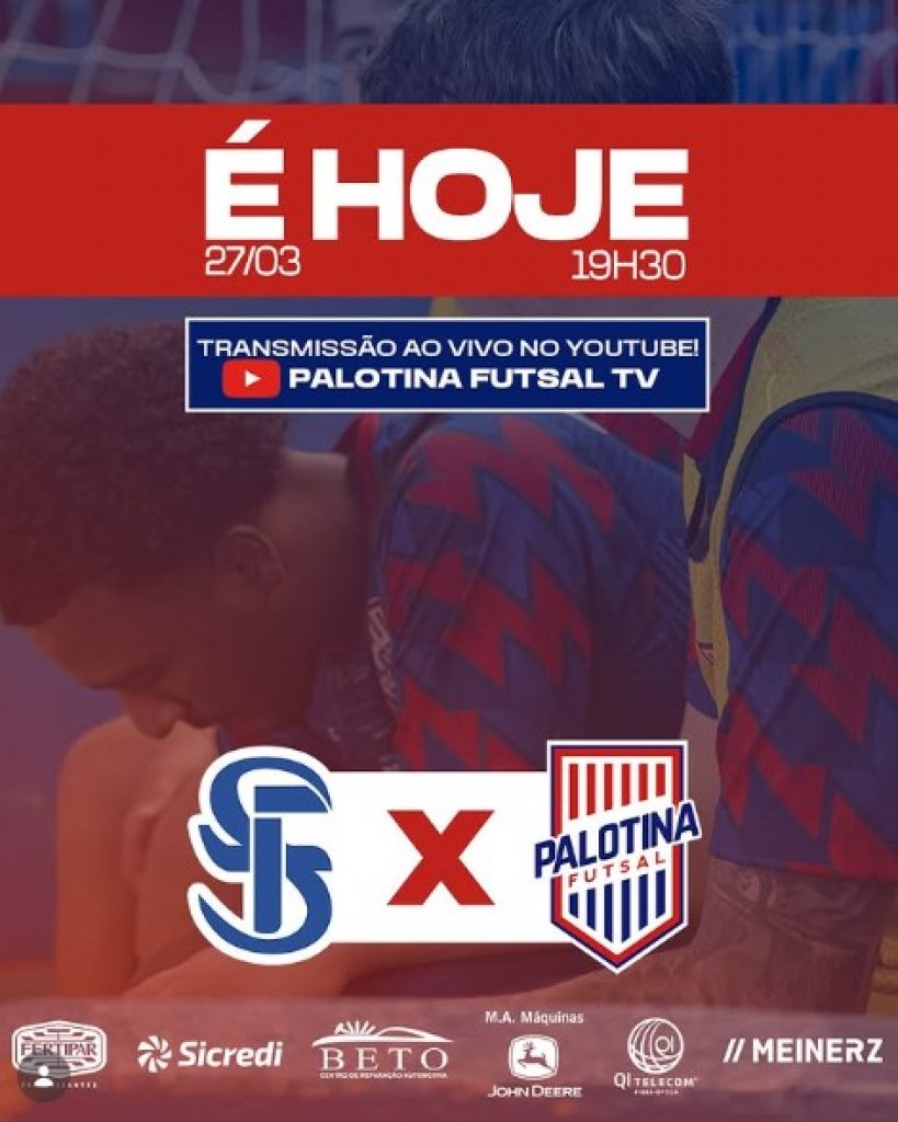 A partida terá transmissão ao vivo pelo canal oficial no YouTube: www.youtube.com/@palotinafutsaltv